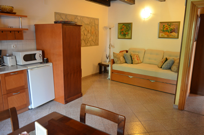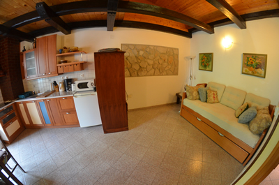 Spalnica za dva, kopalnica, kuhinja z dnevnim prostorom in balkon sestavljajo ta apartma. Potrebno je omeniti, da ima ta apartma balkon kjer se sliši šumenje reke Vipave, kar ob poletnih večerih naredi to prijeten kotiček za ohladitev.